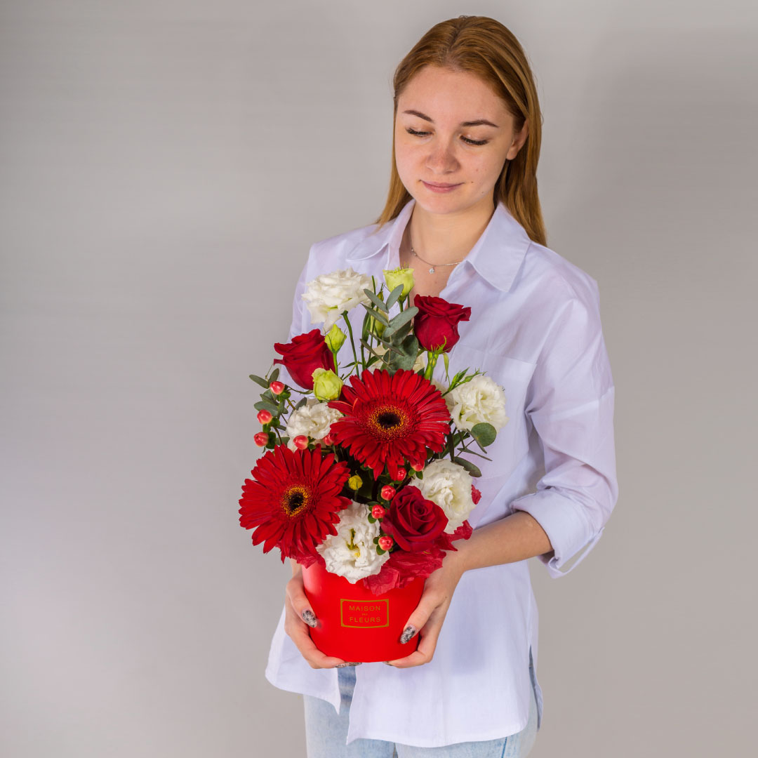Коробка с розами и эустомой арт. 67000